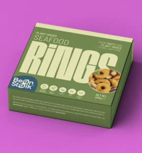 Proteína de soja [agua, cebolla, aislado de proteína de soja (3,6%), proteína de soja texturizada (harina de soja desgrasada (1,4%), gluten de trigo, aislado de proteína de soja (0,7%), almidón de maíz) (3,6%), gluten de trigo, almidón de maíz, aceite de soja (2,0%), espesante (metilcelulosa, goma gellan, goma arábiga), azúcar, sal, saborizante, vinagre, especias, extracto de levadura, cáscara de semilla de psyllium] (68,9%), agua, aceite de soja (10,0%), pan rallado (harina de trigo, levadura, sal, preparaciones enzimáticas, extracto de pimentón, cúrcuma), preparado para fritura (harina de trigo, almidón de maíz, espesante (almidón modificado, goma xantana), gasificante (bicarbonato de sodio), sal), hierro, vitamina B12.