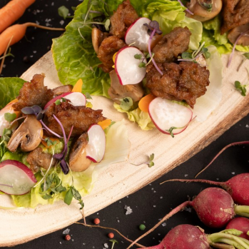 Bocados ricos en fibra y nutrientes esenciales, proporcionando un perfil nutricional comparable al de la carne, por su textura y sabor auténticos.