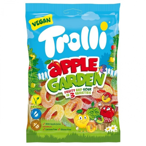 Azúcar, jarabe de azúcar invertido, 12% zumo de manzana de zumo de manzana concentrado, jarabe de glucosa, almidón de maíz, acidulantes: ácido cítrico, ácido málico, ácido láctico, reguladores de la acidez: citrato de calcio, malato de sodio, aromas, colorantes de alimentos (grosella negra, zanahoria), agente colorante: curcumina, azul brillante FCF.