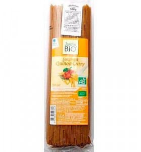 Ingredientes: Espaguetis de quínoa con curry trigo duro semi integral *, harina de quínoa *, curry en polvo *, cúrcuma en polvo*.
