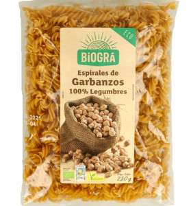 Pasta ecológica elaborada con harina de garbanzos 100%.