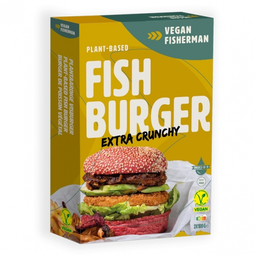 Burger extra crujiente estilo pescado. Todo lo bueno del mar, sin sufrimiento animal :)