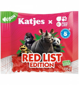 Apoyan a la UICN en el mantenimiento de la Lista Roja de especies amenazadas, representando 4 ejemplos, con sabores frambuesa, arándano rojo, fresa y cereza.