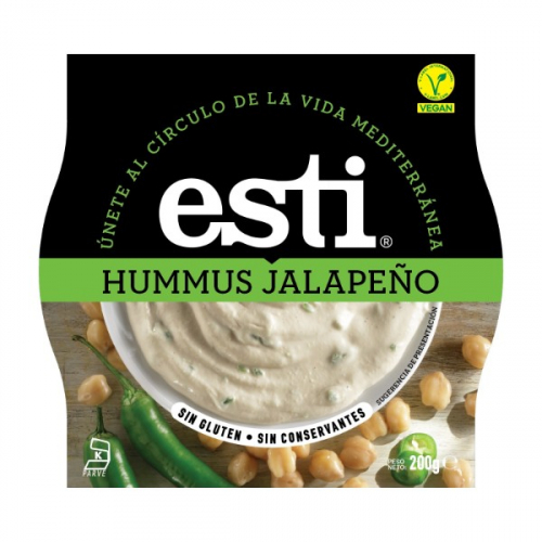 Elaborado con garbanzos griegos y jalapeños, dándole un toque mexicano con un toque ligeramente picante. Es rico en proteínas vegetales y fibra comestible.