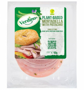 Lonchas de mortadela vegetal con proteína de guisante y pistachos. Totalmente originales, ¡no te las puedes perder!
