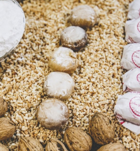 Hecho a mano con aceite de oliva: delicioso y exquisito bocado de vainilla y nueces.