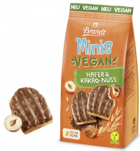 Glaseado graso con cacao con avellanas (44%), {azúcar, grasa de coco (totalmente hidrogenada), jarabe de arroz deshidratado, cacao magro* (3,1%), aceite de colza (totalmente hidrogenada), avellanas tostadas (1,3%), emulsionante [lecitina (soja)], aroma), harina de trigo, harina de avena entera (7,6%), azúcar, aceite de girasol con alto contenido en ácido oleico), levadura, avena (1,7%), copos de avena (1,3%), son de avena (1,3%), emulsionante (lecitina), sal de cocina, harina de malta de trigo, aroma natural, agente de tratamiento de la harina (ácido ascórbico).