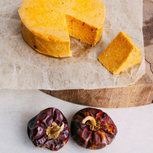 Queso a base de anacardos con el toque del sabor característico de la ñora, un pimiento seco típico de la zona de Levante.