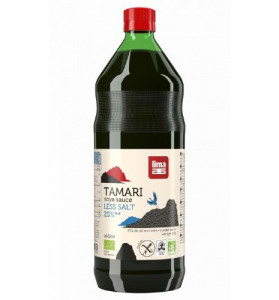 Salsa de soja o Tamari deliciosa, sin gluten (casi todas tienen) y con el 25% menos de sal que otras salsas de soja. Una buena combinación para quien come sin gluten y bio..