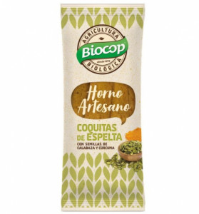 Ingredientes: Harina de TRIGO ESPELTA* 40%, harina integral de TRIGO ESPELTA* 27%, aceite de oliva virgen extra*17%, semillas de calabaza* 14%, cúrcuma* 1%, levadura, sal y mejorante* (harina de malta de CEBADA*, azúcar*, espesante: goma guar*, extracto de malta* (malta de CEBADA*, agua), emulgente: lecitina de SOJA, sal, agente de tratamiento de la harina, ácido ascórbico y enzimas.*De agricultura biológica.