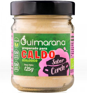 Preparado vegano y ecológico para caldo sabor cerdo. Dale vidilla a tus recetas con este condimento sin gluten, sin glutamato, sin alérgenos y 100% vegetal.