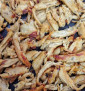 Bocados de seitán hecho de alubias blancas y gluten de trigo estilo pollo con especias y de textura fibrosa y jugosa.