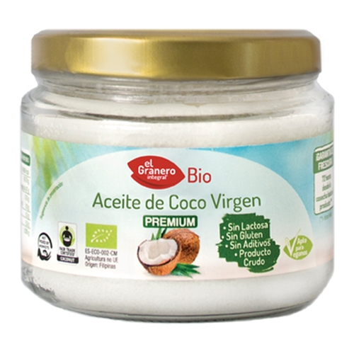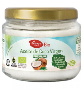 El Granero Integral presenta su exquisito aceite de coco virgen extra ecológico. Es perfecto para utilizar como sustituto de la mantequilla, para freír, hornear