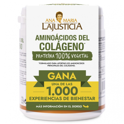 Aminoácidos del Colágeno contiene exclusivamente proteína 100 % vegetal. Los guisantes y las lentejas son las materias primas de este compuesto, rico en lisina, glicina y prolina. Tres aminoácidos que son las piezas clave para la formación del colágeno dentro de nuestro cuerpo. Gracias a esta innovadora formulación, ya pueden aprovecharse todos los beneficios del colágeno, sin recurrir a fuentes de origen animal.