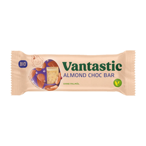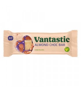 Barrita de chocolate blanco con almendra, orgánica y sin aceite de palma.