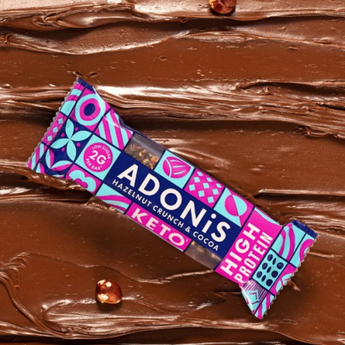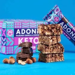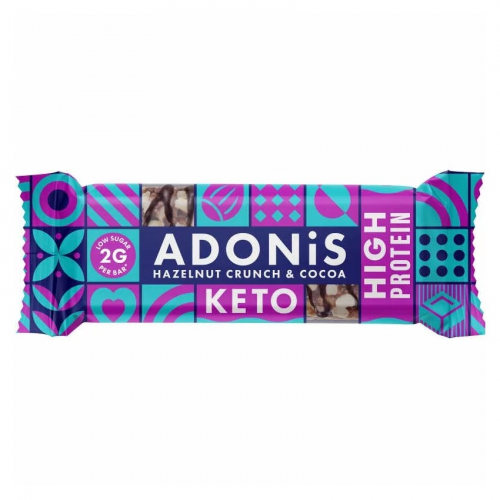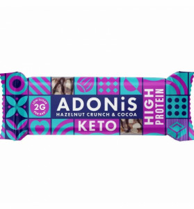 Barrita crujiente de avellana con coco y vitaminas. Aptas para dietas keto y altas en proteínas.