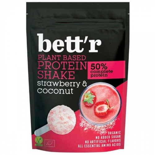 Batido de proteínas sabor fresa y coco, perfecto para empezar el día a ¡topísimo! Es bio, sin gluten, y ¡riquísimo!