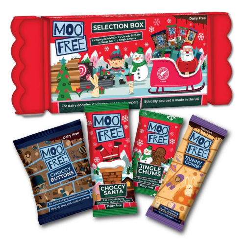 -Choccy Buttons & Jingle Chums: azúcar, masa de cacao, aceite de karité, jarabe de arroz, manteca de cacao, almidón de arroz, inulina, harina de arroz, emulsionante: lecitina de girasol.