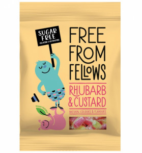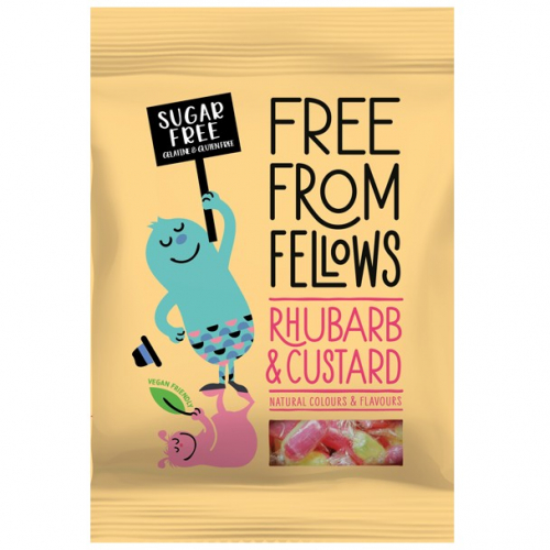 Caramelos con sabor a ruibarbo y crema de nata, sin azúcar y sin gluten. No contienen colorantes ni sabores artificiales.