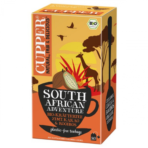 Exótica mezcla inspirada en los sabores del continente africano, con base de rooibos y cacao, canela, y el toque dulce del árbol de miel.