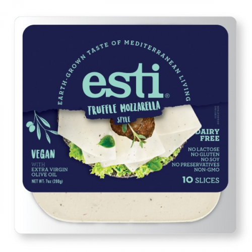 Agua, aceite de coco (origen UE) 23%, almidón modificado, almidón de tapioca modificado, sal marina, aceite de oliva virgen extra 1%, extracto de oliva, corrector de acidez: ácido cítrico, aroma de truffa y mozzarella (vegana), colorante: betacaroteno.
