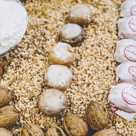 Hecho a mano con aceite de oliva: delicioso y exquisito bocado de vainilla y nueces.