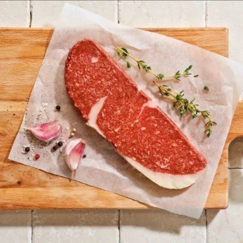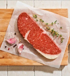 El Plantrecote, una fuente alternativa de proteínas a base de trigo y guisantes, tiene tanto el aspecto como la textura de un auténtico entrecot.