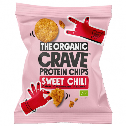 Chips proteicos de lenteja roja con sabor a chili dulce.