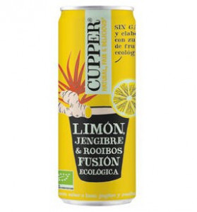 Refresco sin gas de limón, jengibre y rooibos, ecológico.