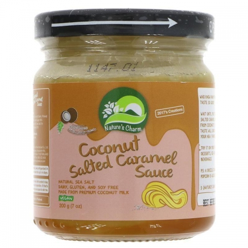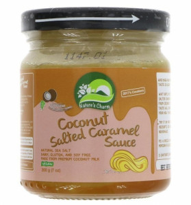 La salsa de caramelo salado de coco Nature's Charm está hecha de leche de coco premium. Ideal para dar a tus postres, helados y bebidas un dulce sabor a caramelo con un punto saladito, la combinación perfecta.
