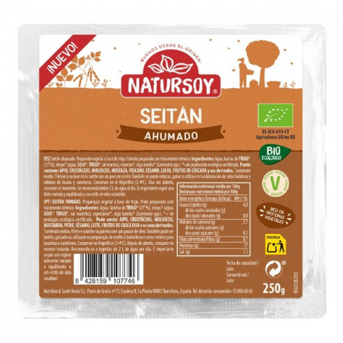 Con ingredientes ecológicos a base de harina de trigo y salsa de soja. De textura similar a la carne, con un toque ahumado y rico en proteínas.