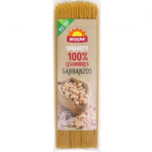 Pasta ecológica elaborada con harina de garbanzos 100%.