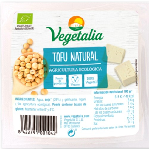 Este tofu se elabora con granos de soja de cultivo ecológico certificado. La soja utilizada no ha sufrido manipulación genética.